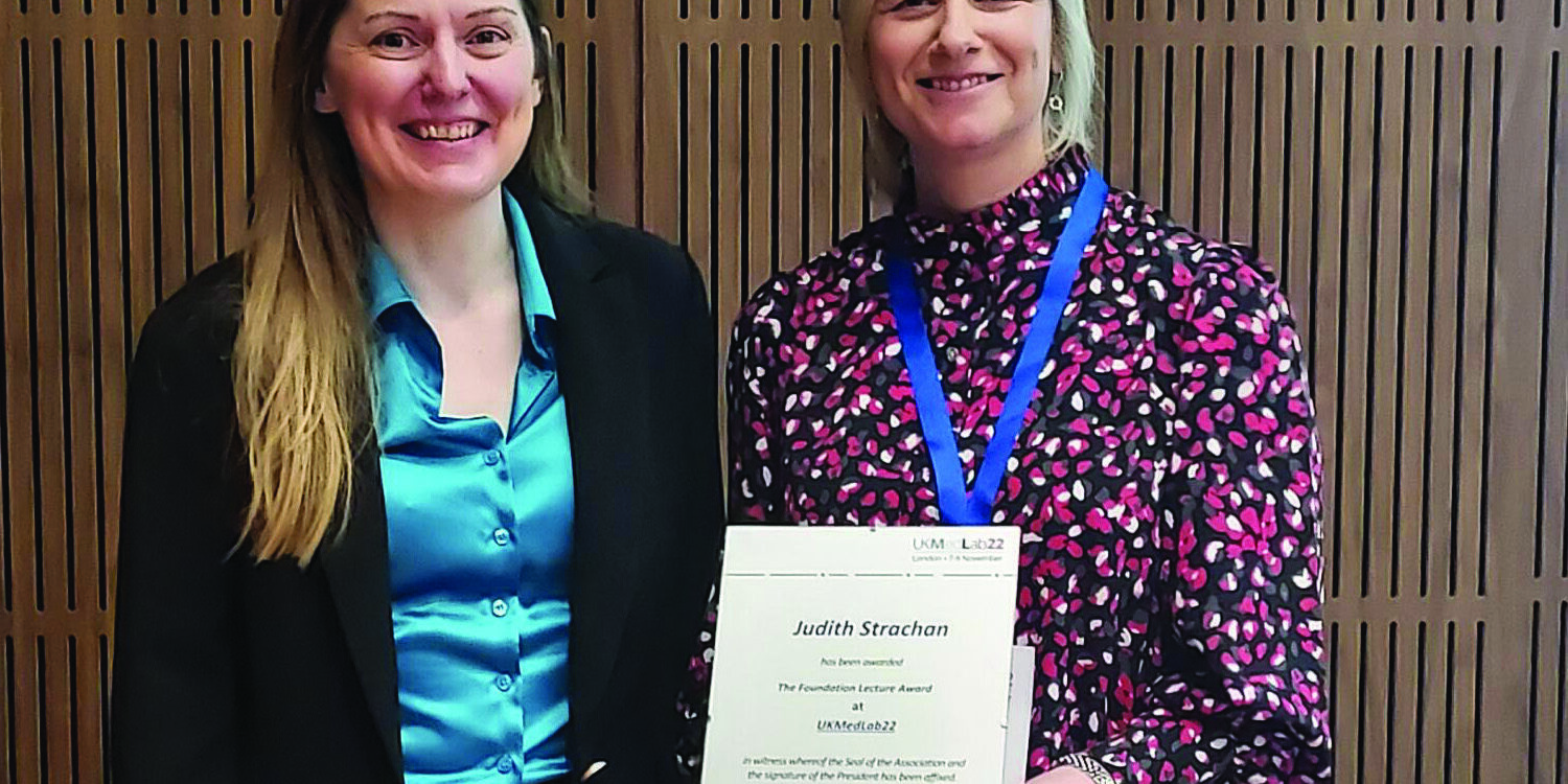 At the ACB UKMedLab22 Scientific Meeting, held at the Royal College of Pathologists in London in November 2022, Judith Strachan was presented with the prestigious Foundation Award. This accolade recognises her services to Clinical Biochemistry and, in particular, her work with the Scottish Bowel Screening Programme (SBoSP). In her plenary speech, “FIT for the Future (Past and Present too!)”, Judith discussed the changing demands on the laboratory, based on her experience working at NHS Tayside.